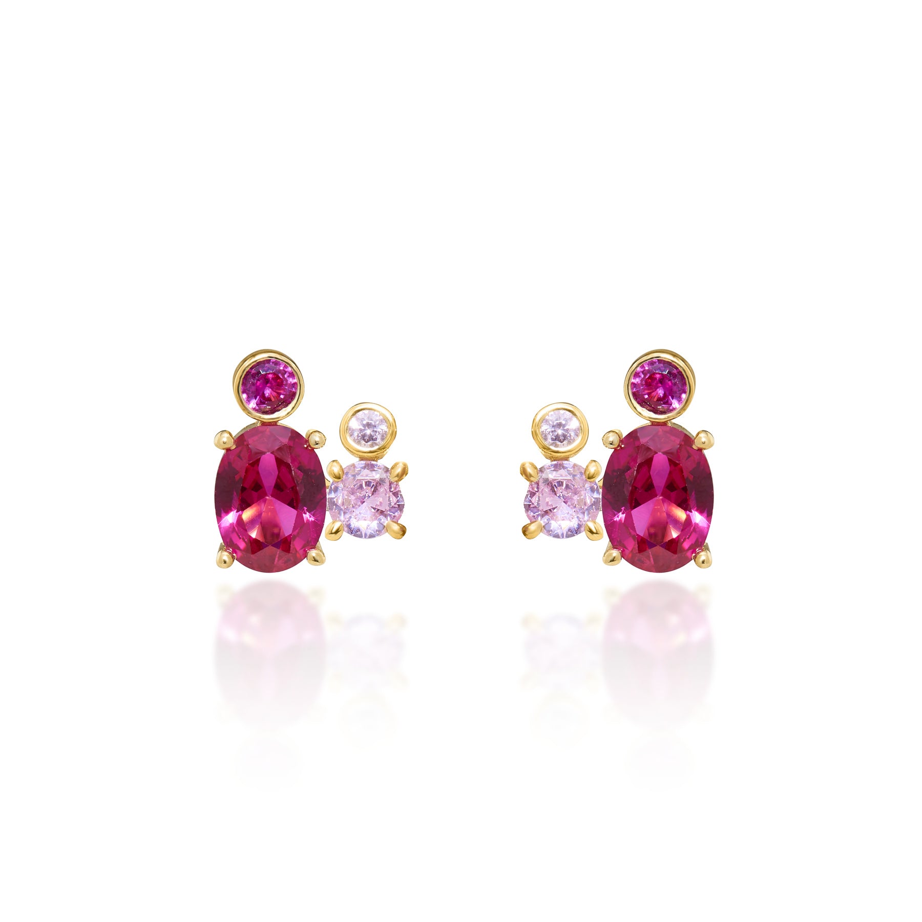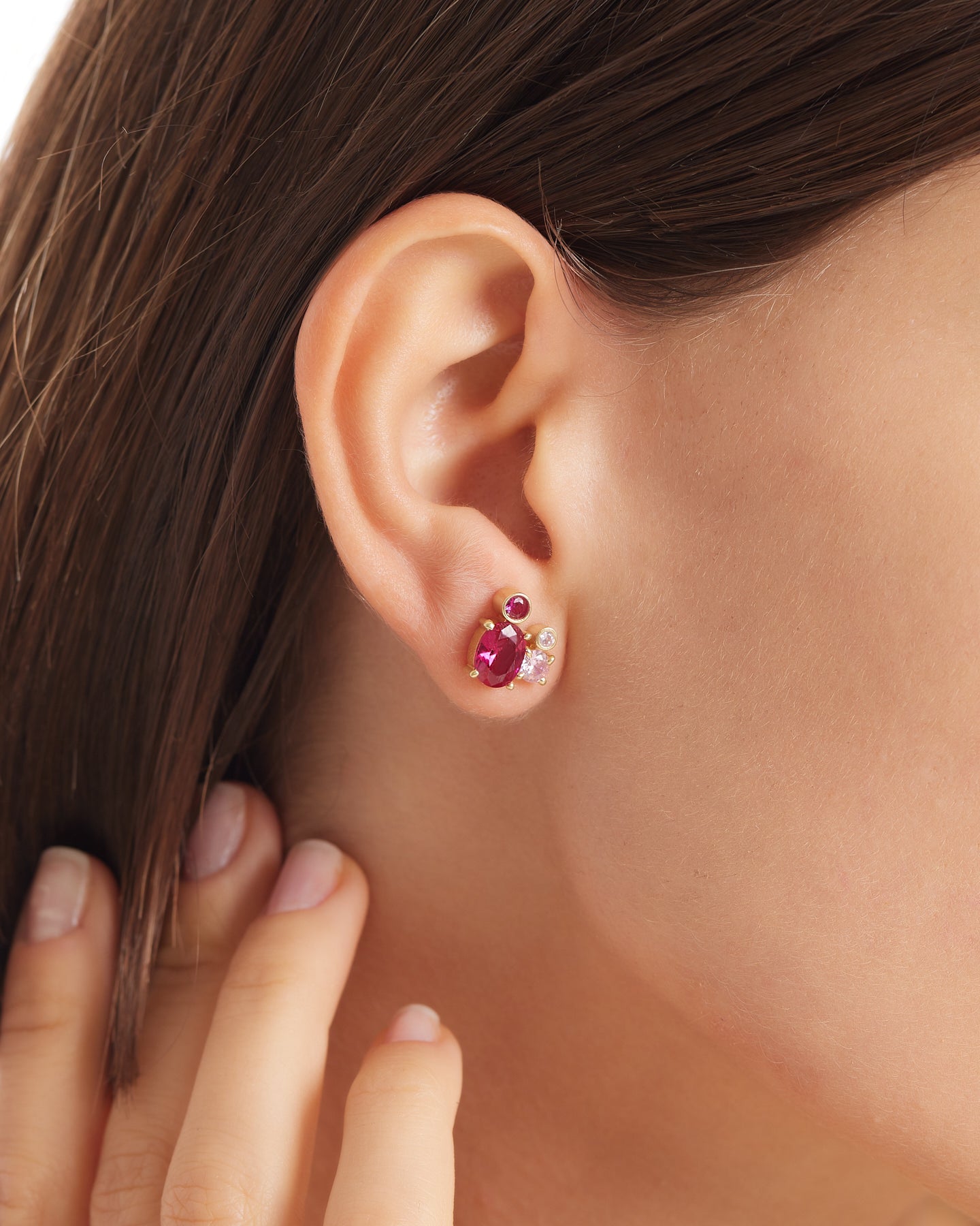 Happiness Stud Earrings (Ruby and Pink Zircon Stones)