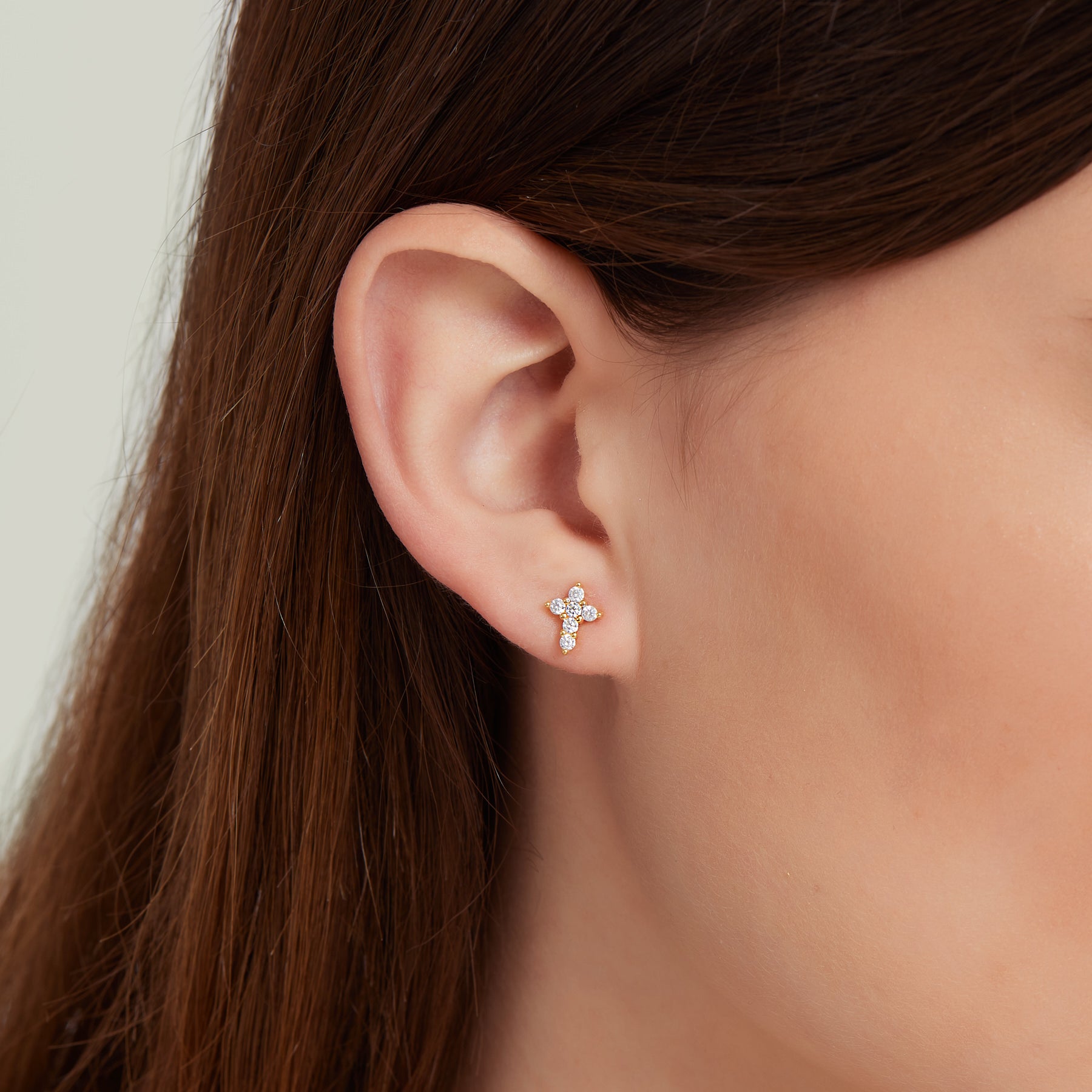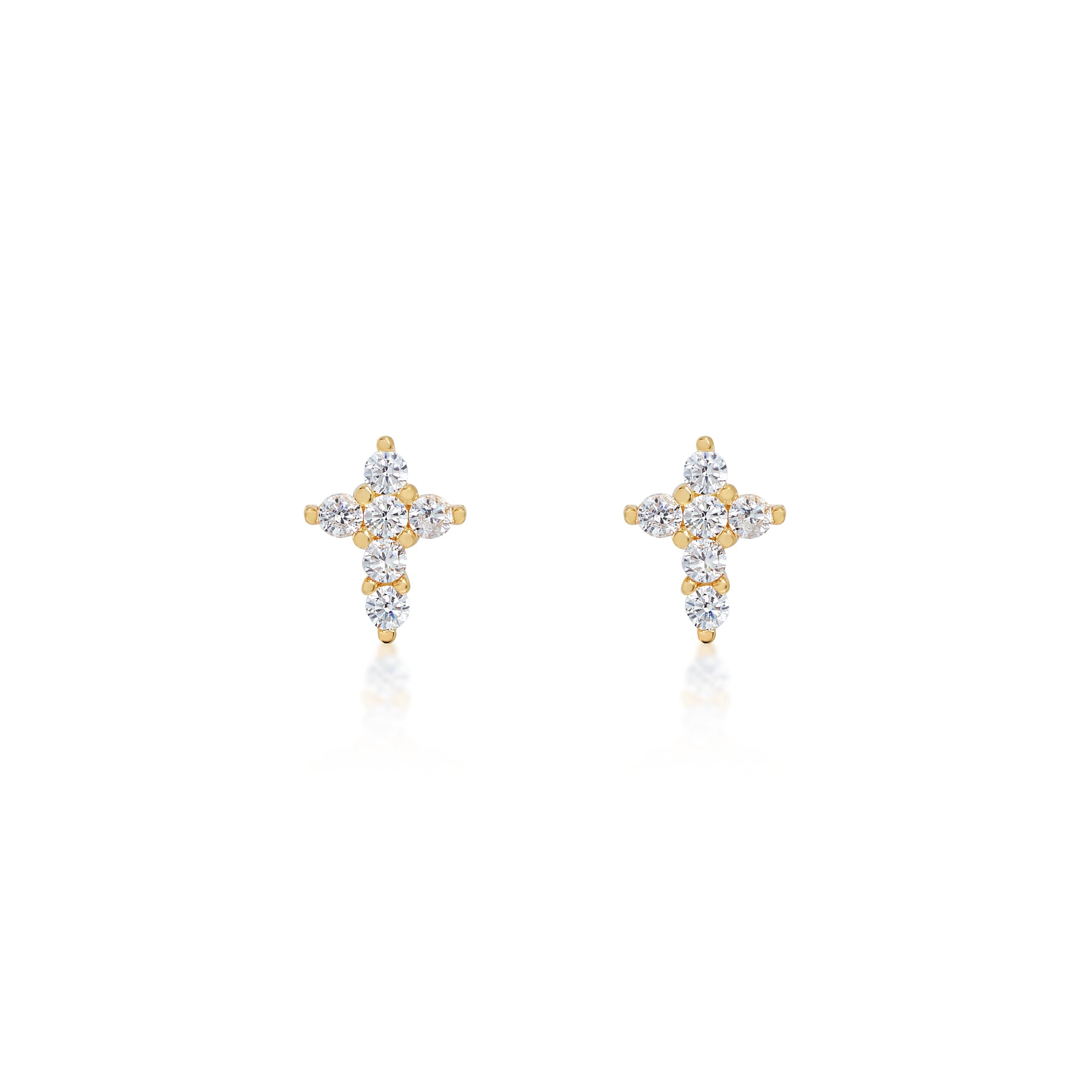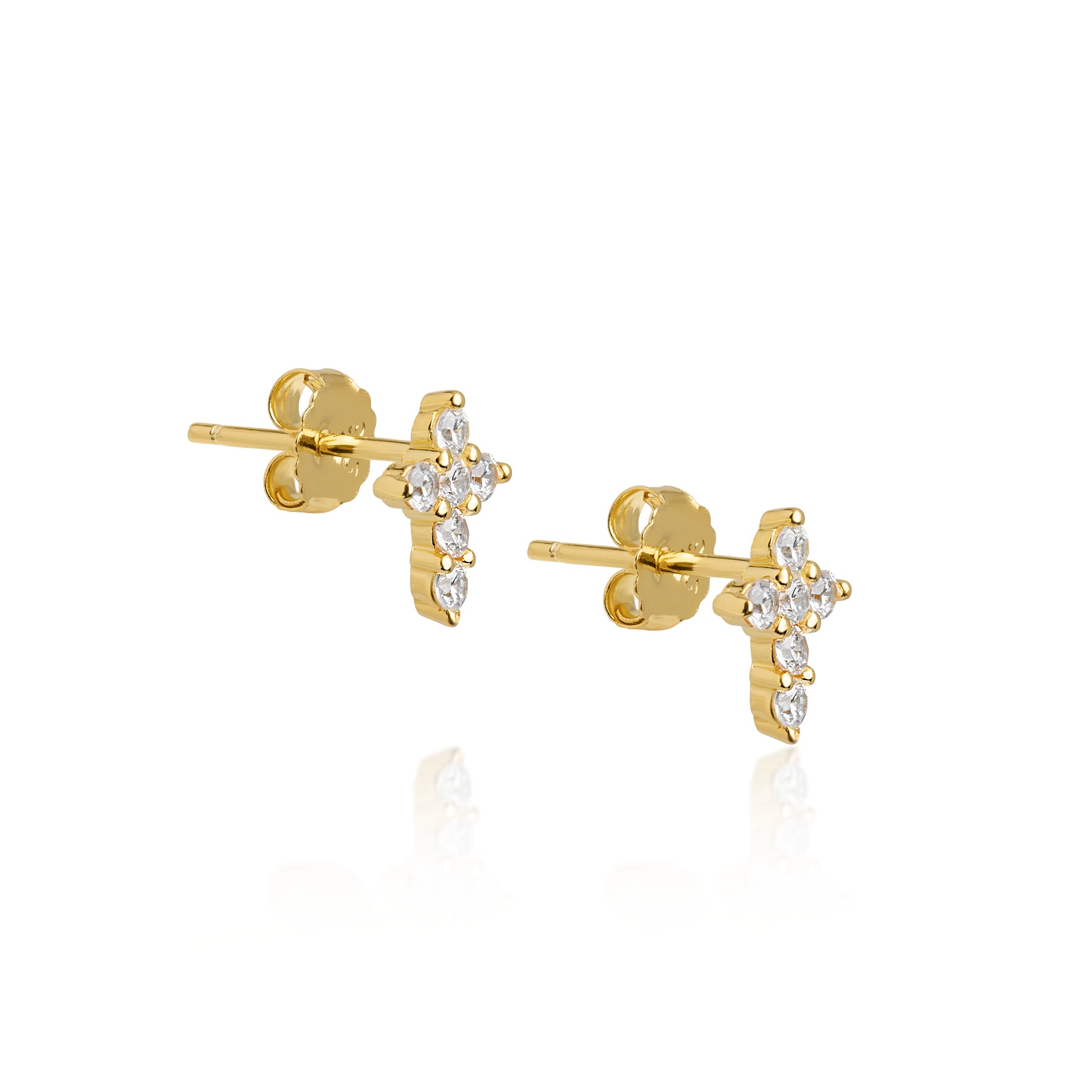Gold-plated stud earrings with a cross made of (24 carats) 925 silver and white zircon.