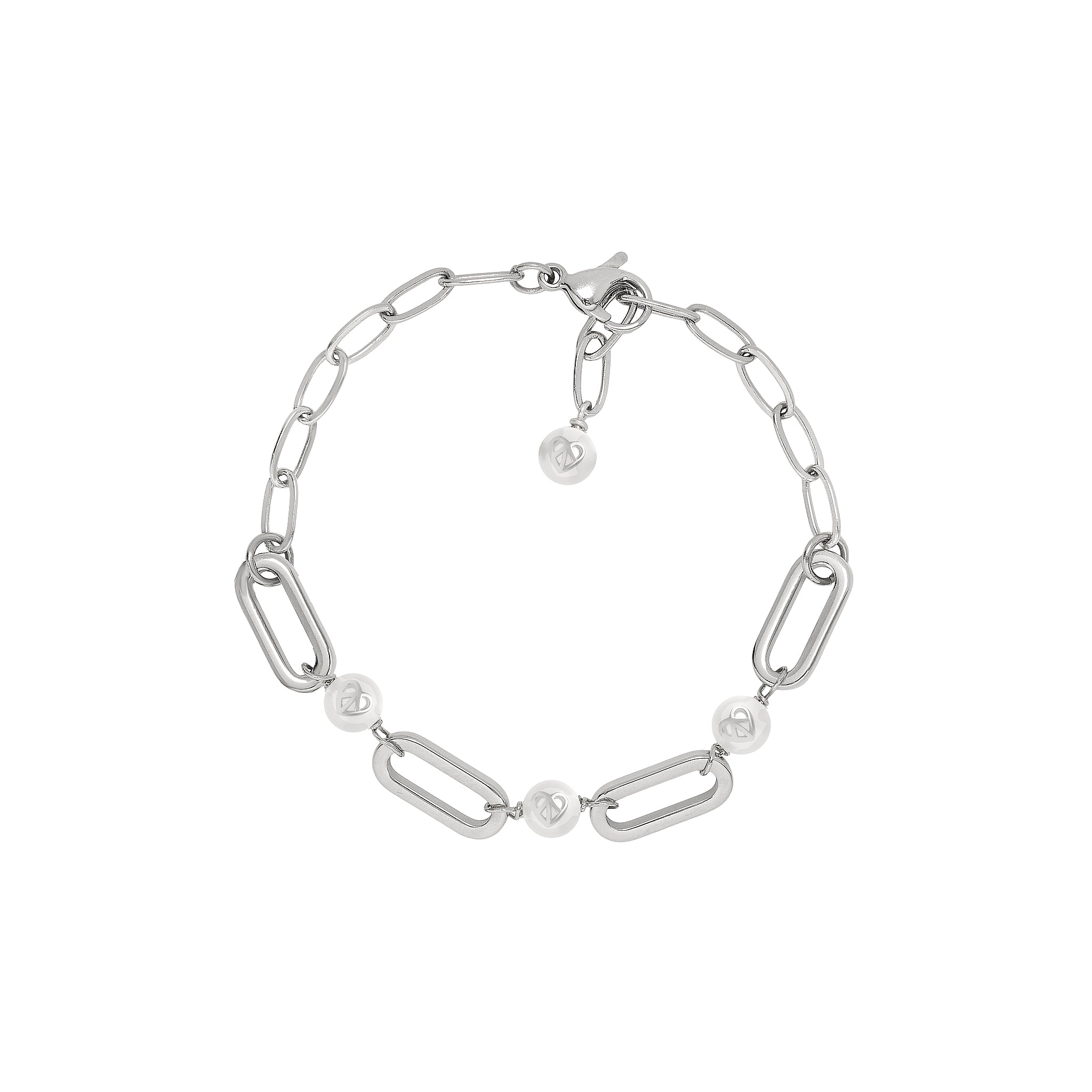 Chain bracelet with white pearls, decorated with the brand's iconic heart-logo.