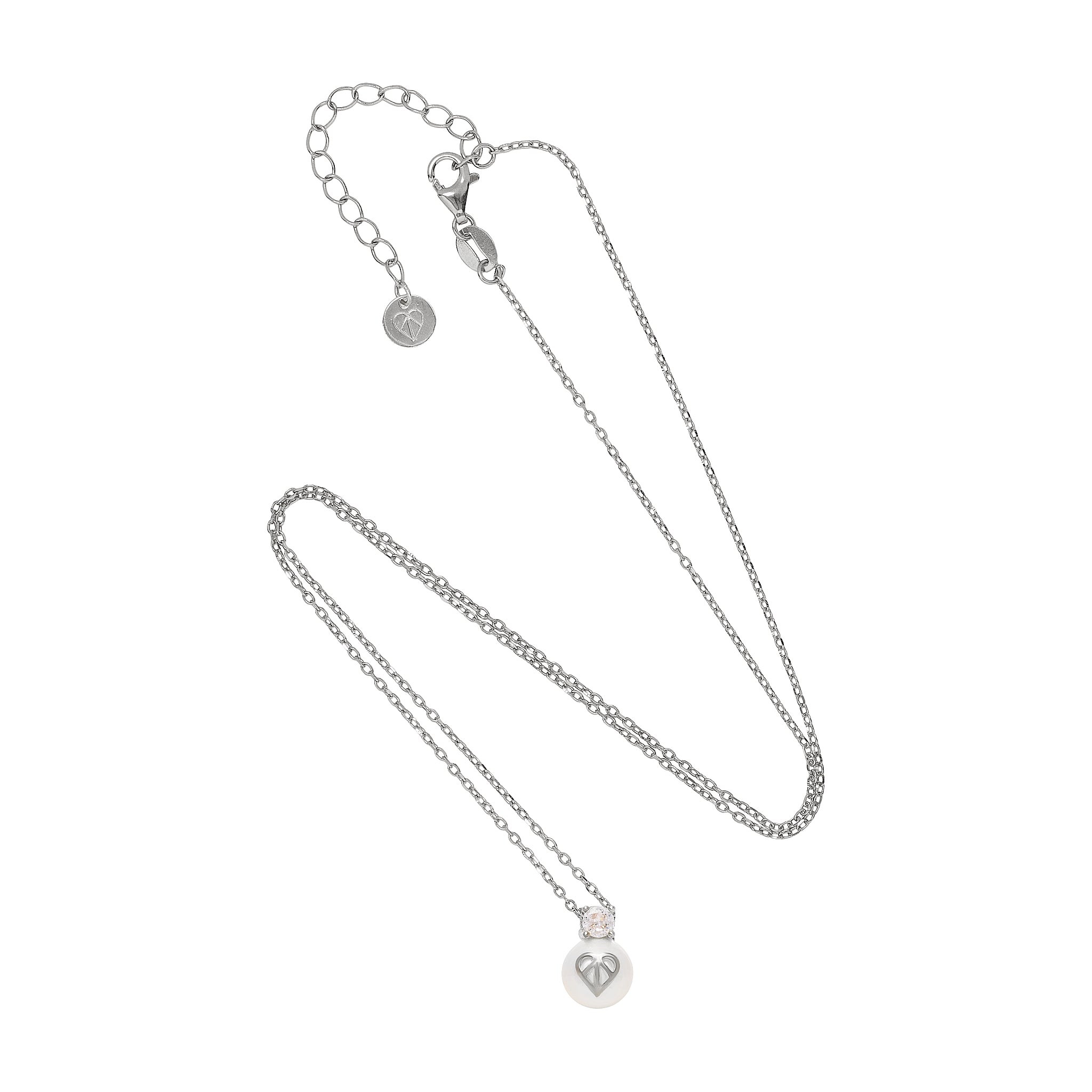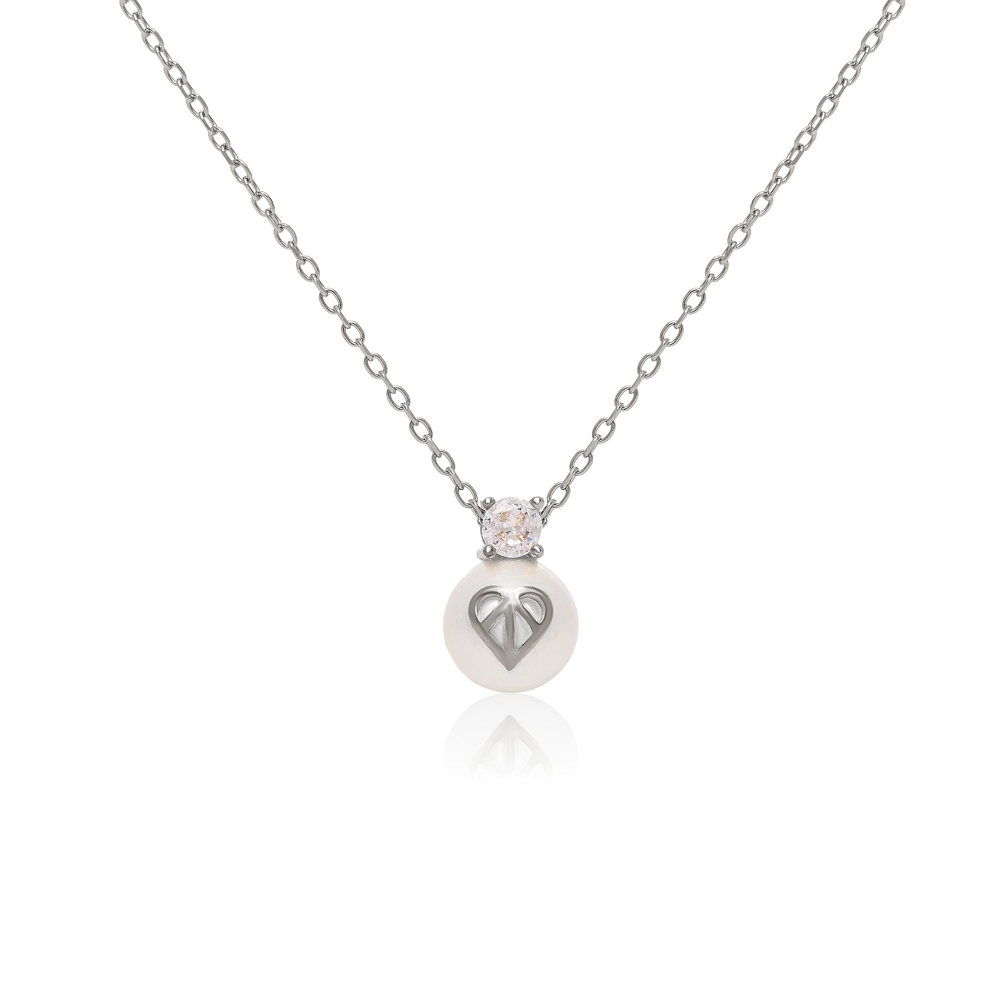 925 silver necklace with a white pearl, decorated with the brand's iconic heart-logo , and a sparkling zircon stone — because luxury is hidden in the details.