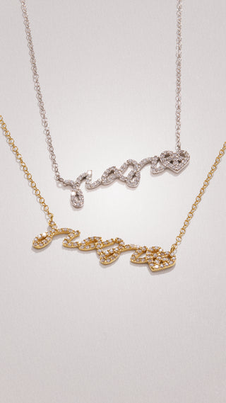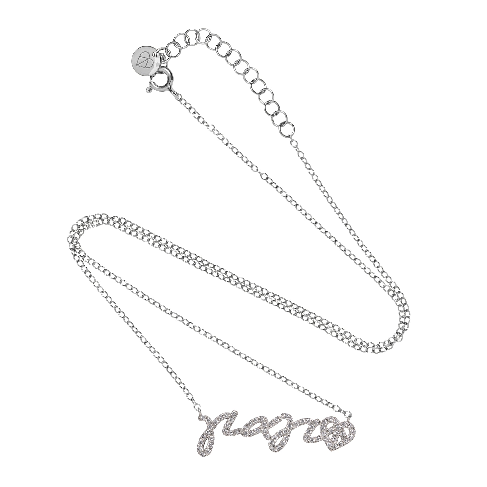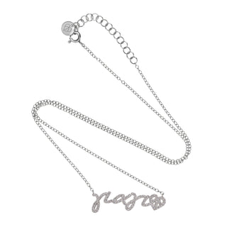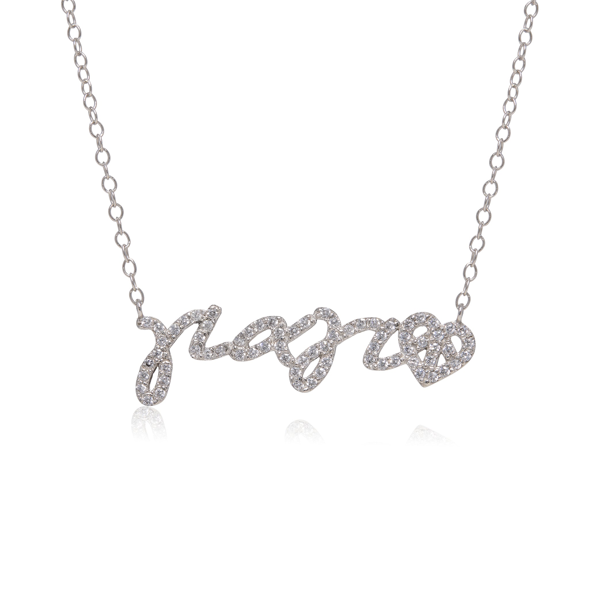 Shiny handmade " grandmother " necklace made of rhodium-plated 925 silver, decorated with white zircon stones and the brand's distinctive heart at the end. Because everything that starts with grandma...ends with love.