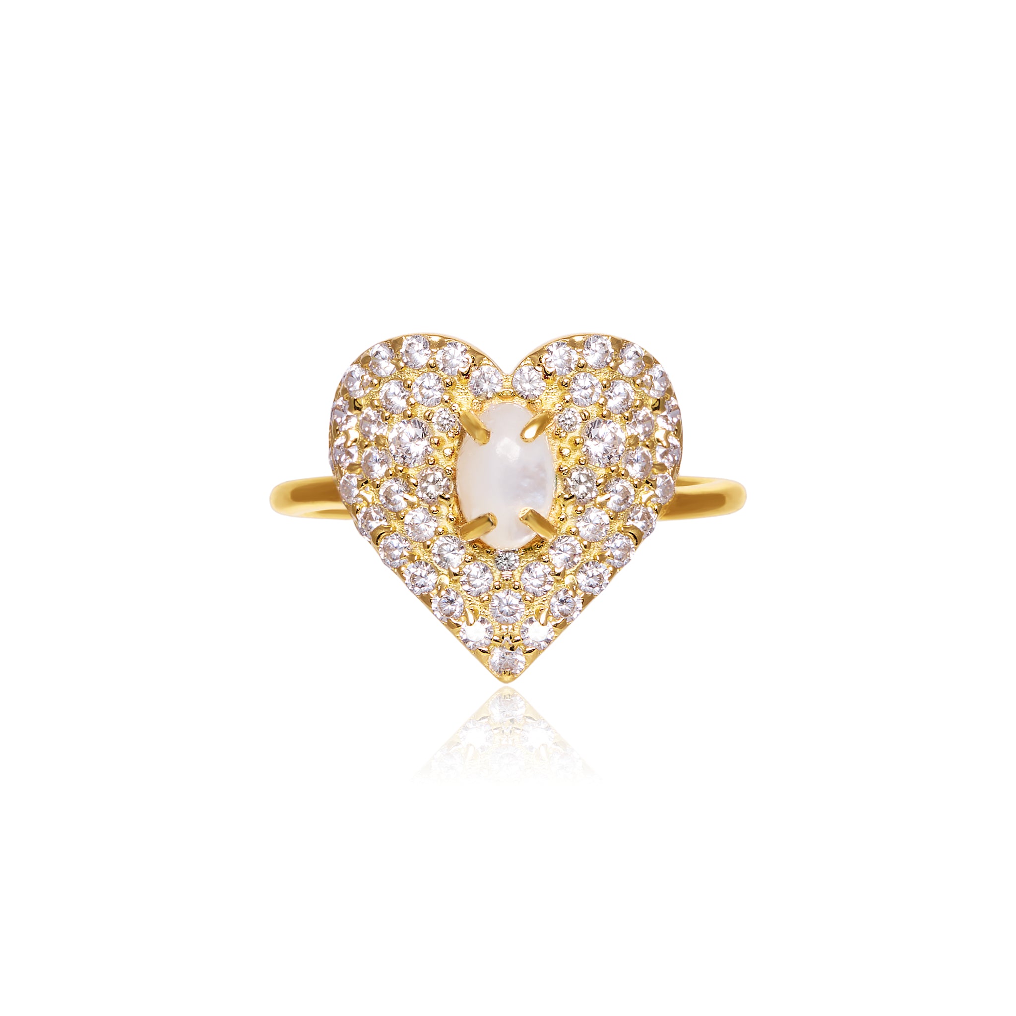 Impressive heart-shaped ring with semi-precious stone and sparkling zircons. It belongs to the Love Collection and is our suggestion for this year's Valentine's Day.