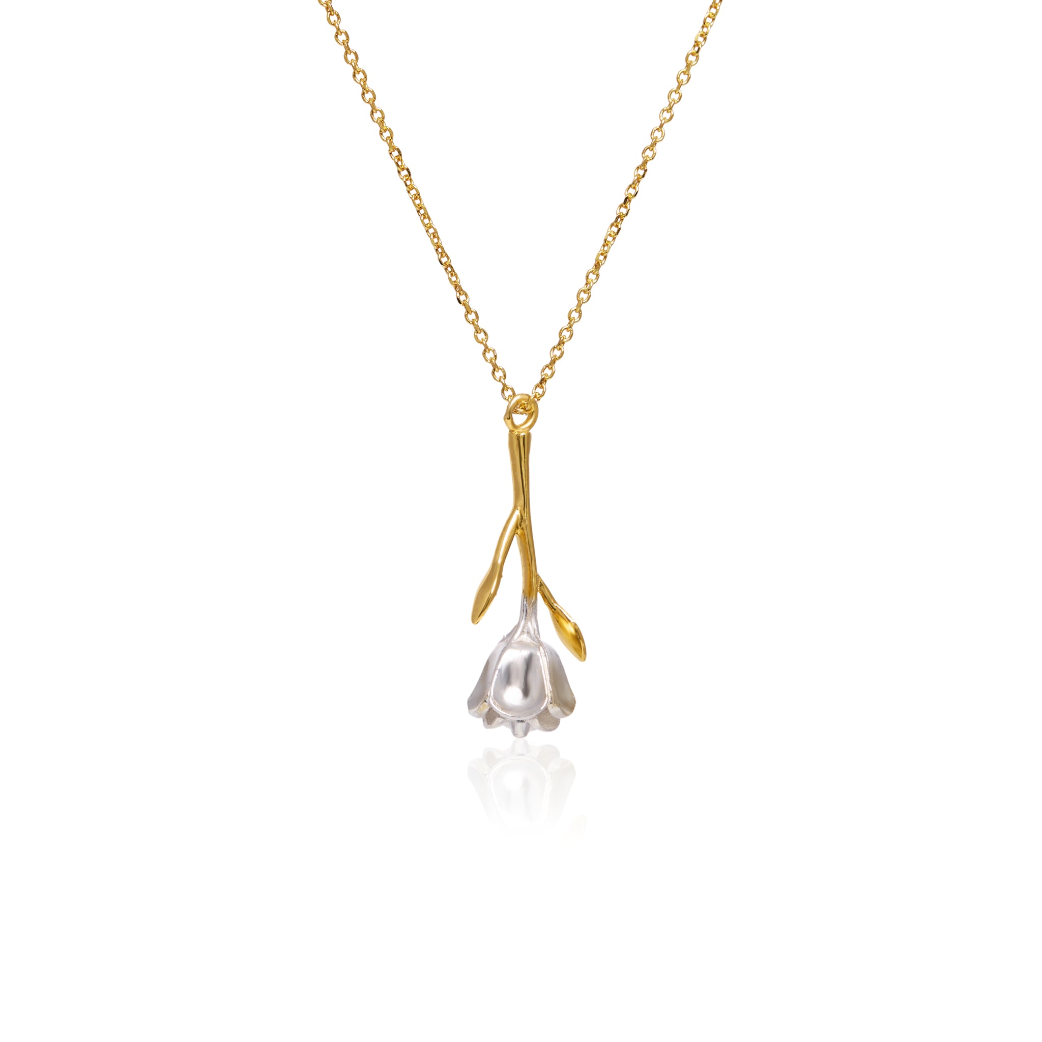 Το απόλυτο statement piece. Ένα δίχρωμο τριαντάφυλλο που αγκαλιάζει αρμονικά το χρυσό και το ασημί, συμβολίζοντας την τέλεια ισορροπία μεταξύ παράδοσης και σύγχρονου στυλ. Από ασήμι 925 με double plating για λάμψη που διαρκεί.